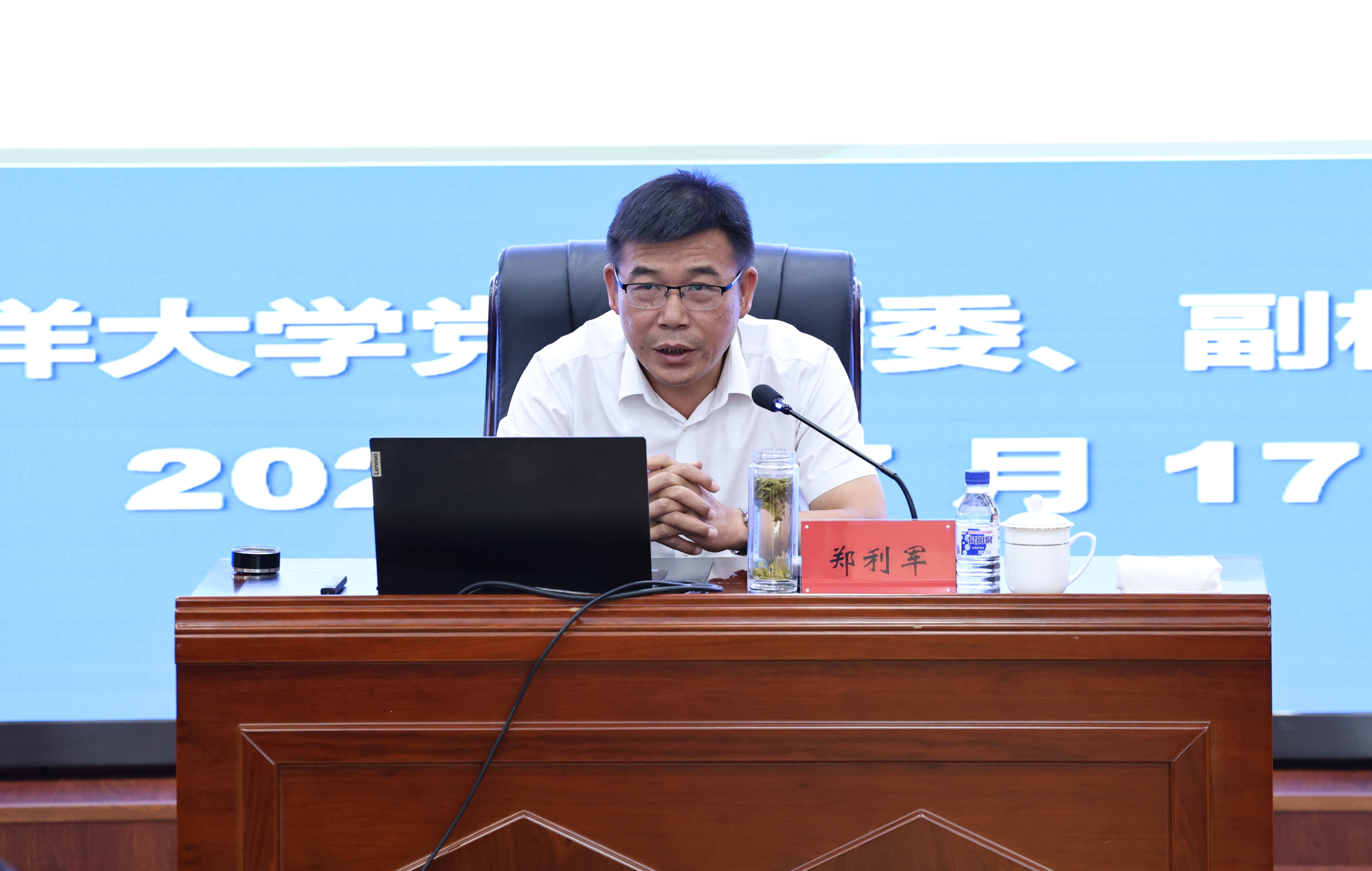 党委副书记蔡立峰主持开班式。学校领导班子成员、全体处科级以上干部、党支部书记、系(中心)主任等300余人参加培训。